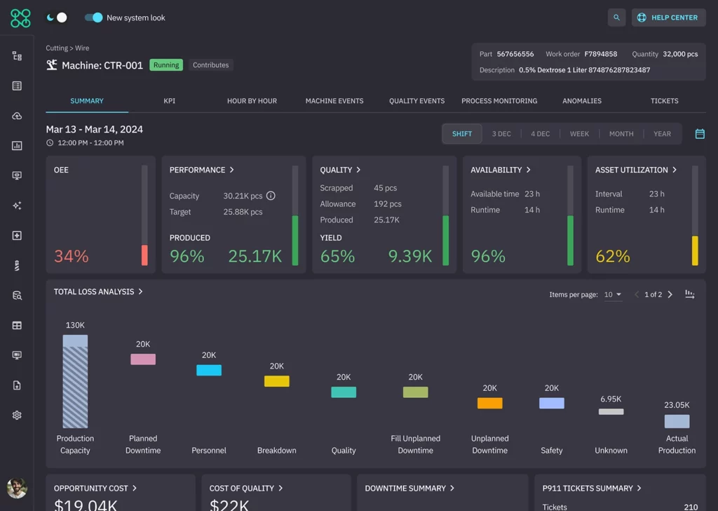 Standardize metrics like OEE, availability, downtime reasons, and scrap across the connected assets.